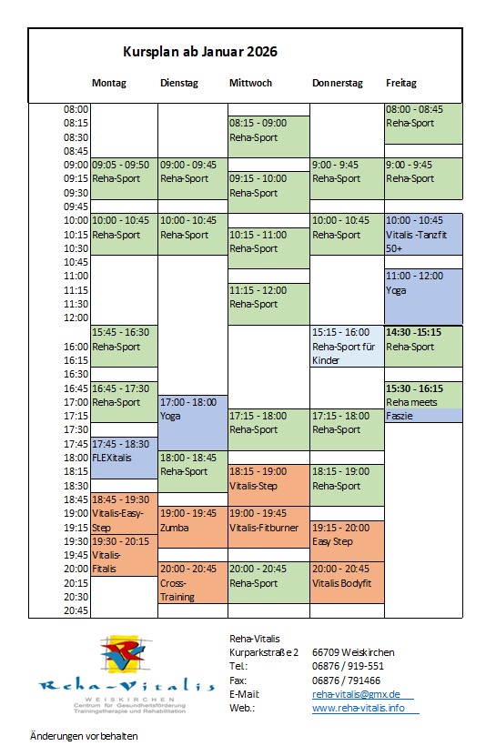 Du willst dich so richtig auspowern, dann probiere Vitalis-Fitburner, Vitalis-Bodyfit, Cross-Training oder Vitalis-Fitalis aus.